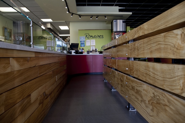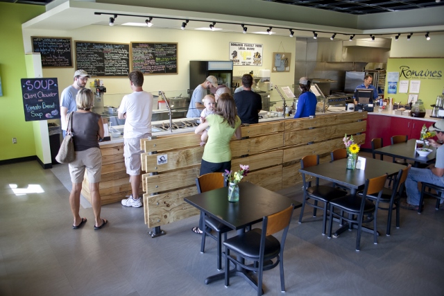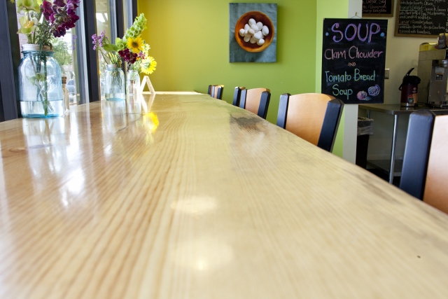 Romaines Restaurant — Missoula’s only Certified Green Restaurant — is local and sustainable from the core of its business. Just like the salads and soups, the window counter top is local and sustainably harvested…and organic!