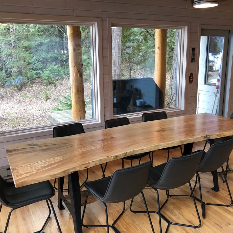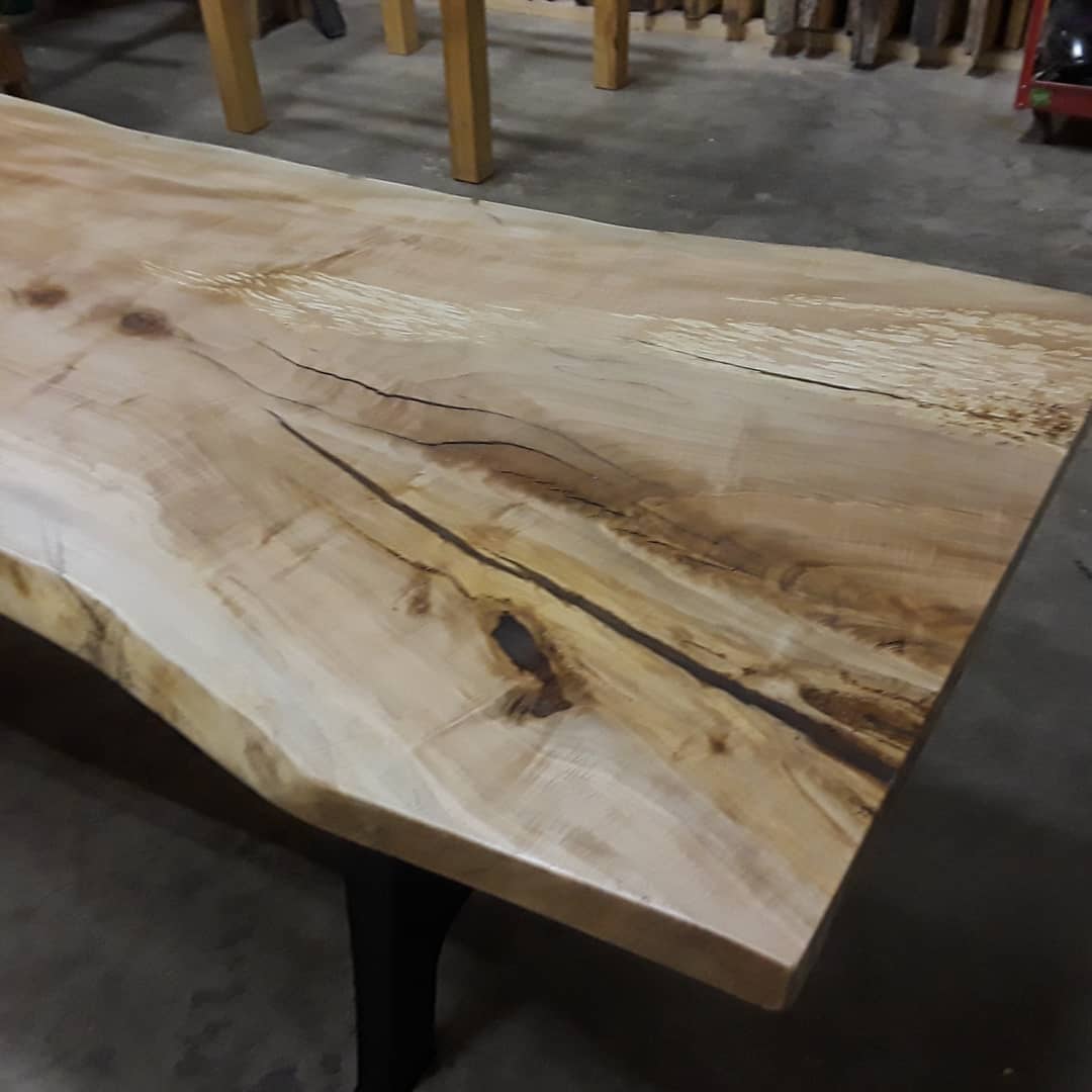 This Gorgeous Spalted Silver Maple came from Van Buren Avenue in Missoula. We built this table utilizing legs the customers provided. It now lives in their home on Swan Lake.