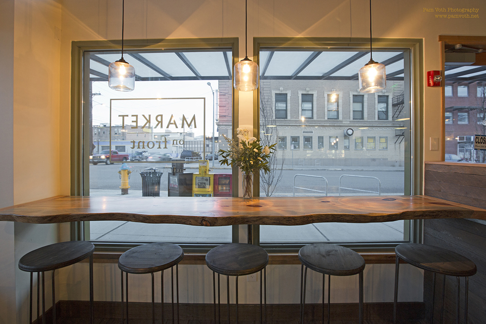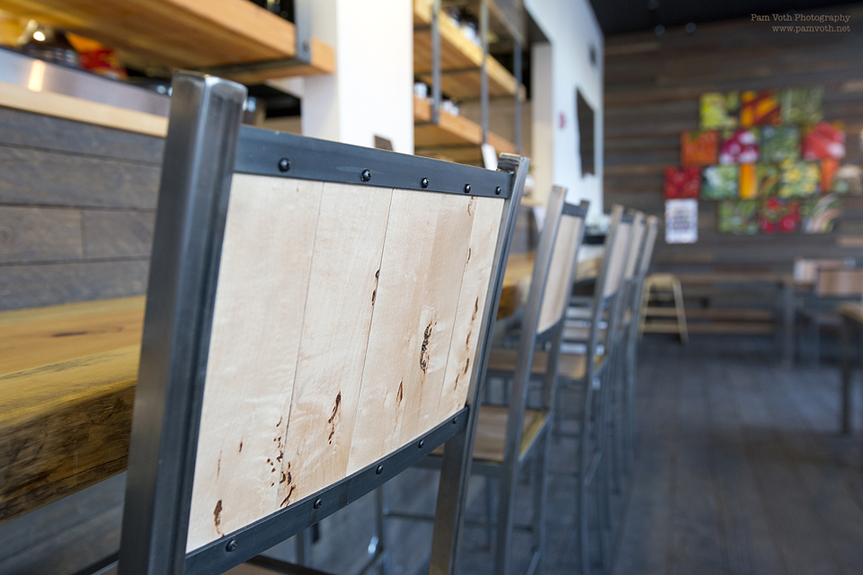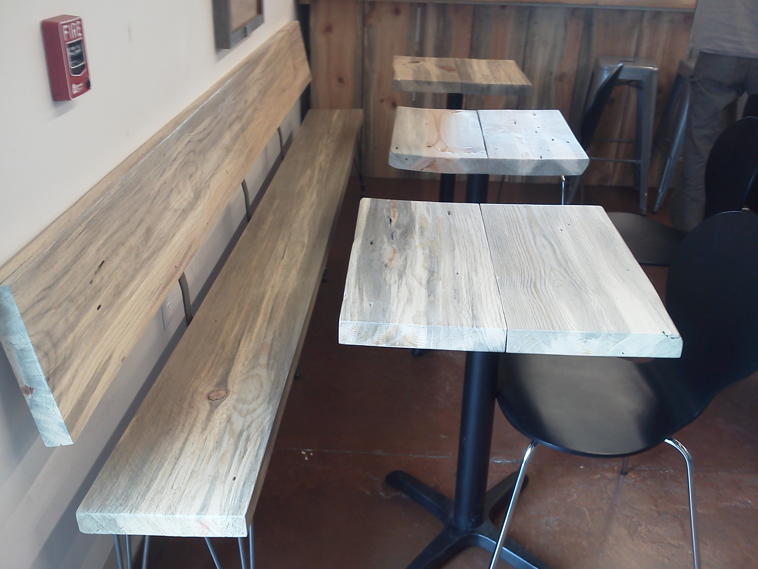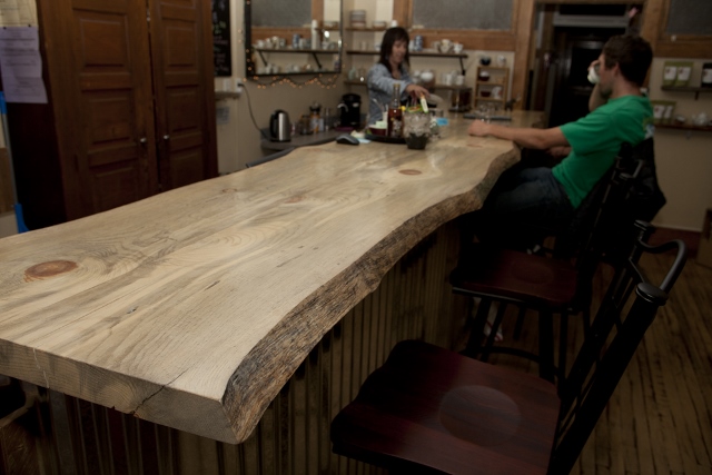 Enjoy a cup of Joe at a sleek, locally-sourced table and bench at Black Coffee Roasting.