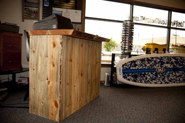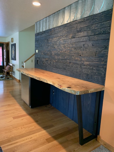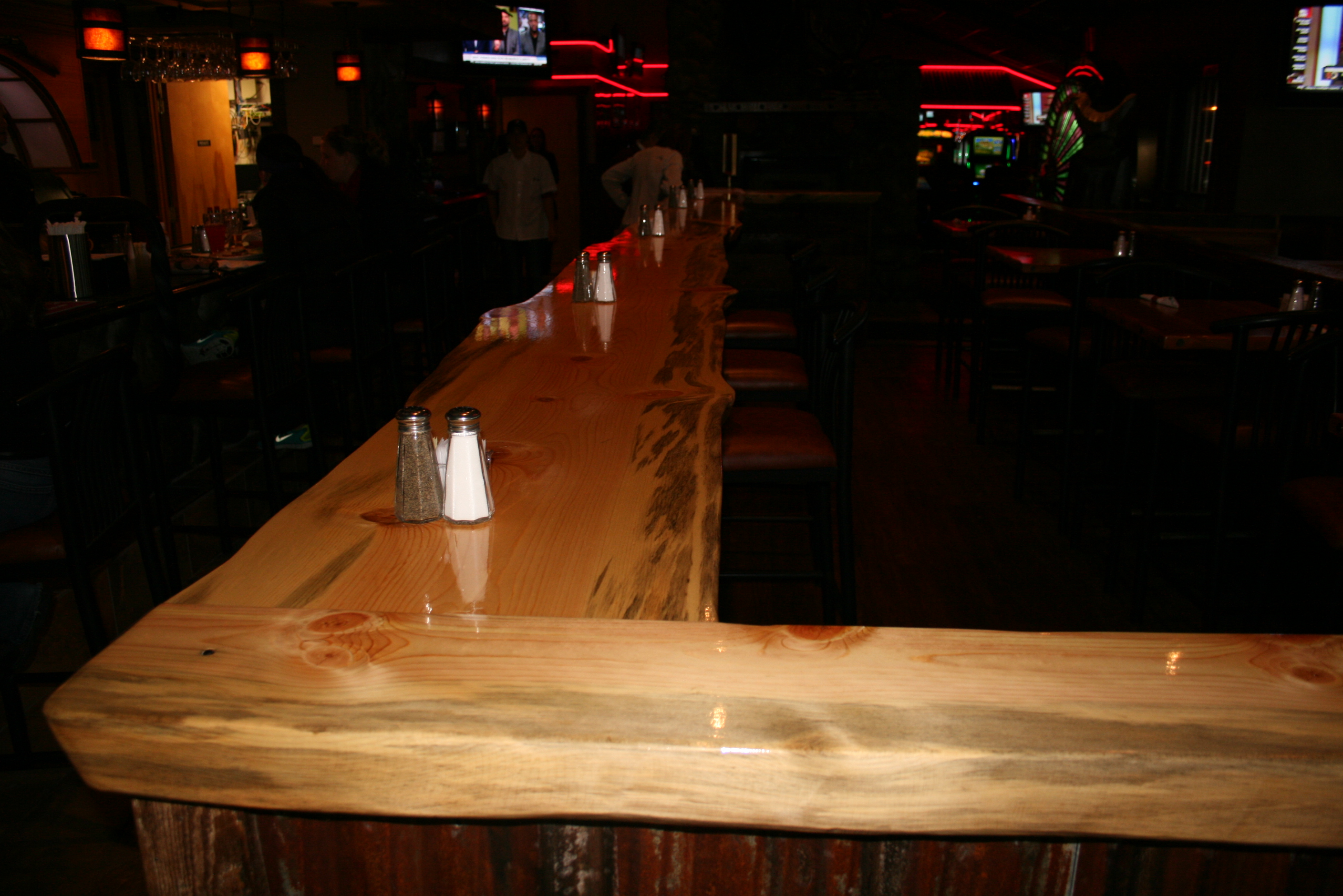 While you’re enjoying a cold one, check out our pine bar top at the Laughing Grizzly.