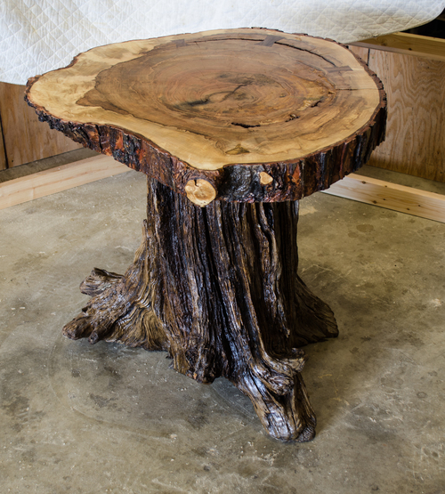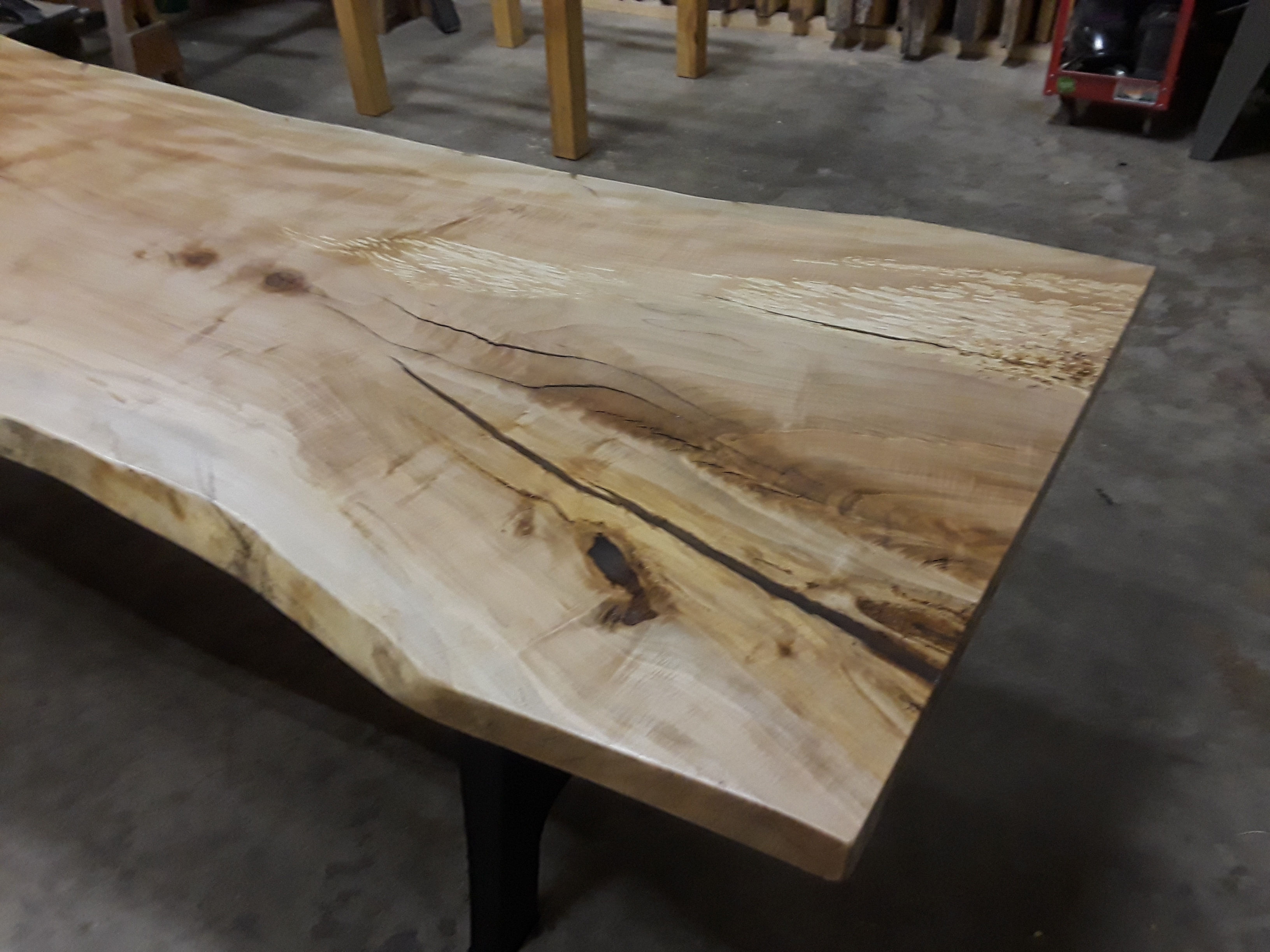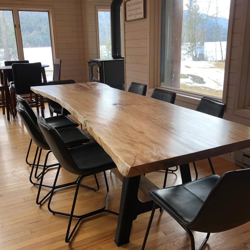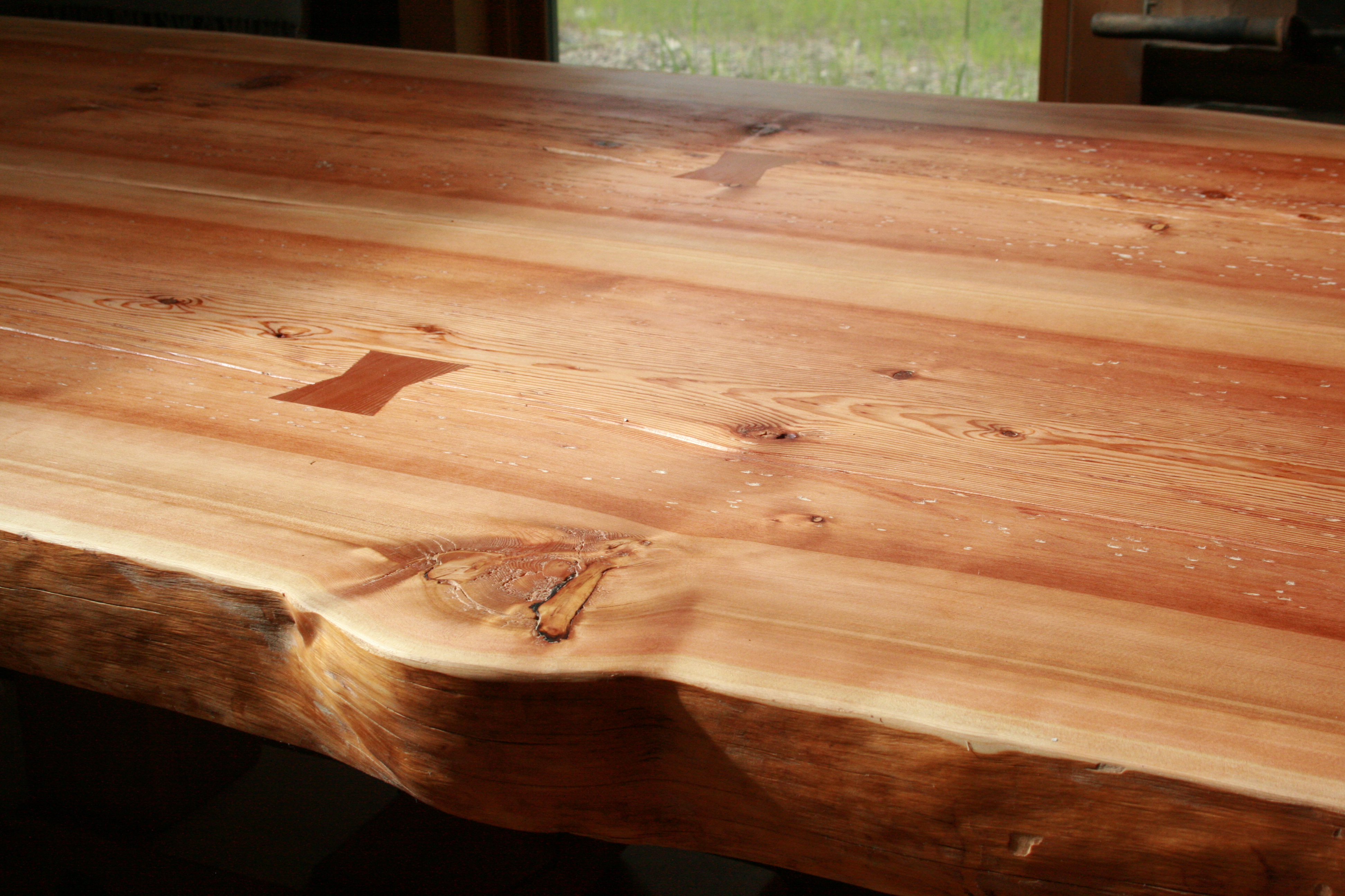 Live edge pine bench board top used by Grant Creek Woodcraft to create this beauty.