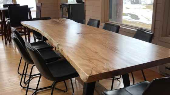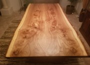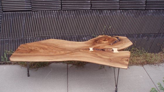 We have a huge variety of Live Edge Slabs for sale, plus a full service woodshop to help you build a one of a kind heirloom. Here is a Locally harvested Siberian Elm Coffee Table with simple hair pin metal legs added.