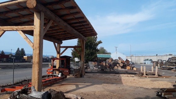 Our new Woodmizer Shed Roof features a 28 foot span to accommodate easy loading of extra long logs. So we had to use huge 33 foot long logs that we repurposed from Blackfoot Telecoms pole yard. Our longest cut on our mills is 24 feet, so this meant we had …